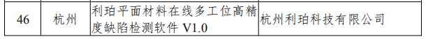 杭州利珀科技有限公司憑借”利珀平面材料在線多工位高精度缺陷檢測軟件 V1.0“成功入選。