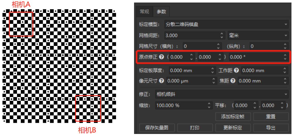 如上圖所示,用戶通過輸入網(wǎng)格間距、尺寸、原點(diǎn)修正等信息,可以將多個(gè)相機(jī)標(biāo)定在同一坐標(biāo)系內(nèi),實(shí)現(xiàn)多個(gè)相機(jī)的聯(lián)合標(biāo)定,從而計(jì)算出兩個(gè)相機(jī)內(nèi)任意兩點(diǎn)或者其他特征的距離。