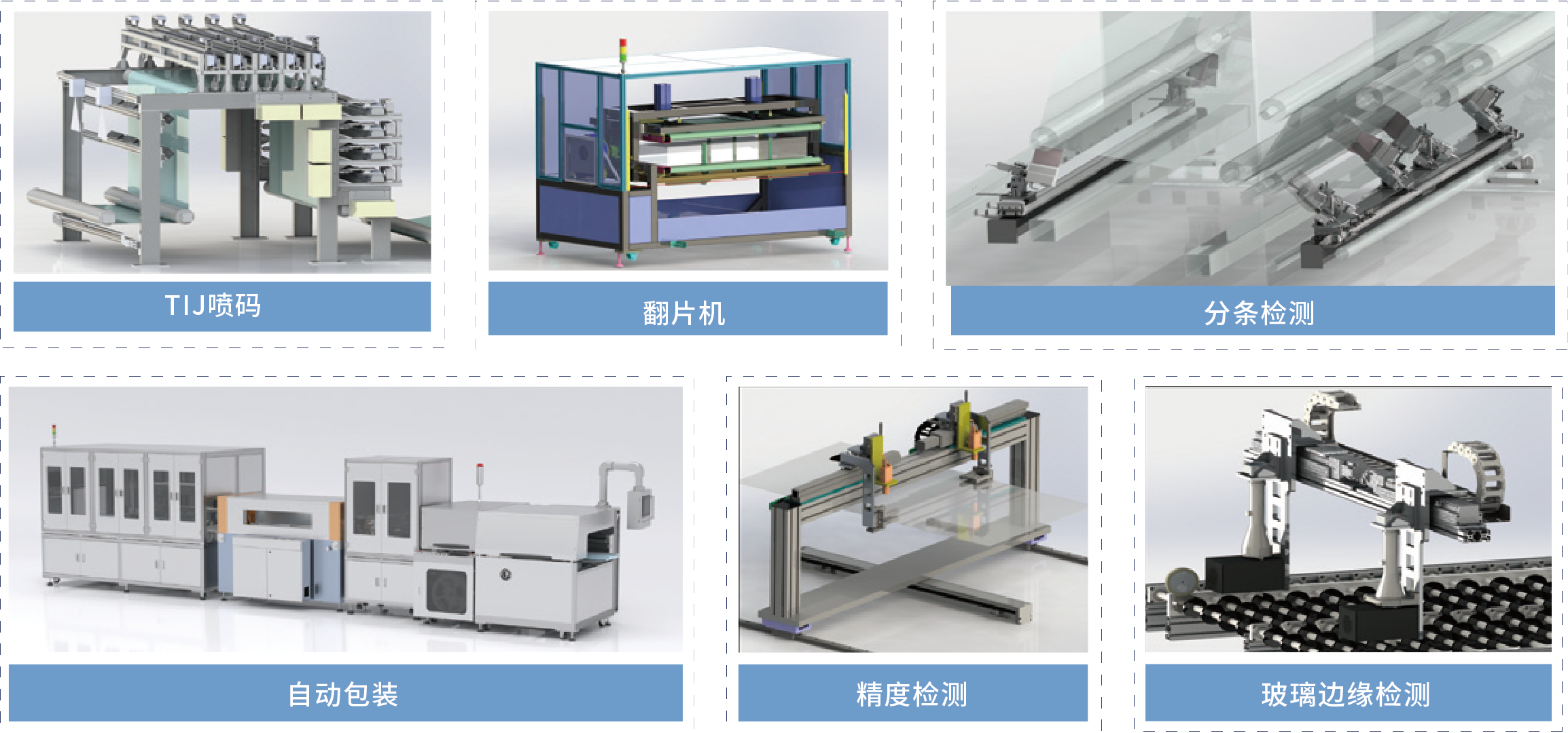TIJ噴碼、翻片機、分條檢測、自動包裝、精度檢測、玻璃邊緣檢測